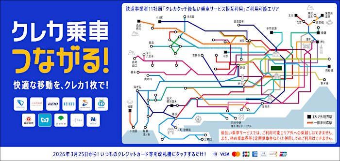 関東の鉄道事業者11社局でクレカタッチ決済の乗車サービス相互利用開始へ