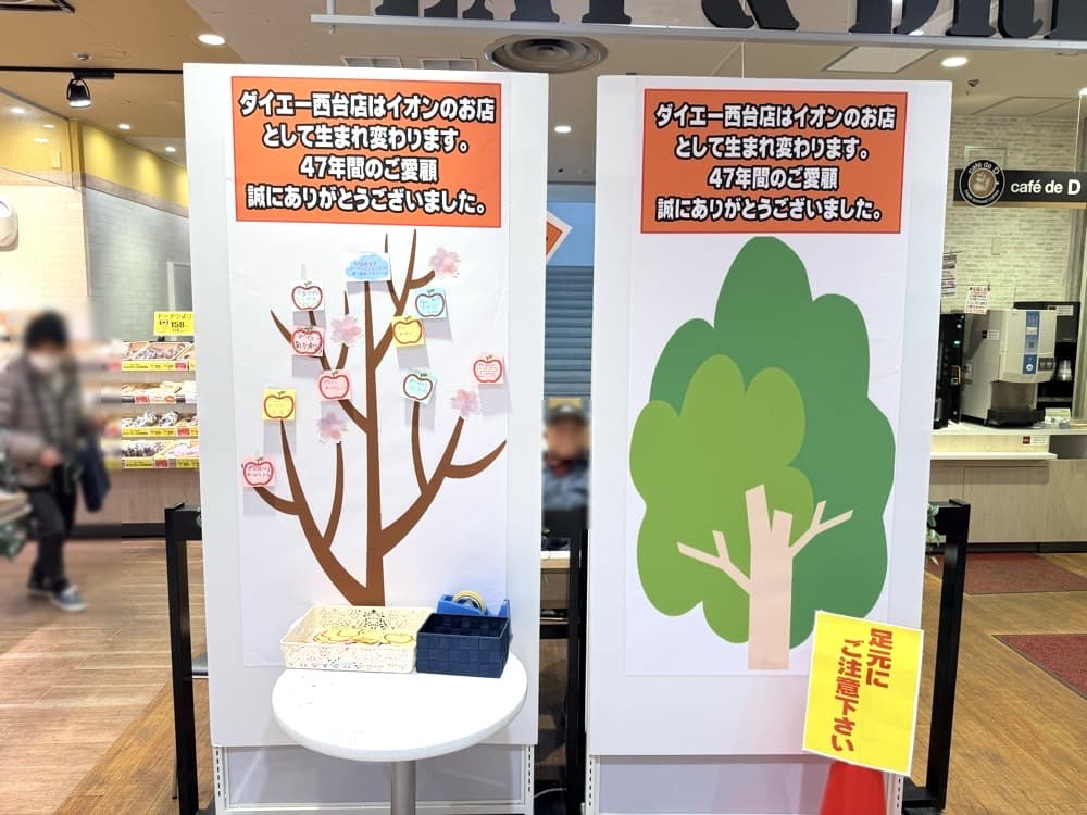 閉店する「ダイエー西台店」に感謝のメッセージが登場